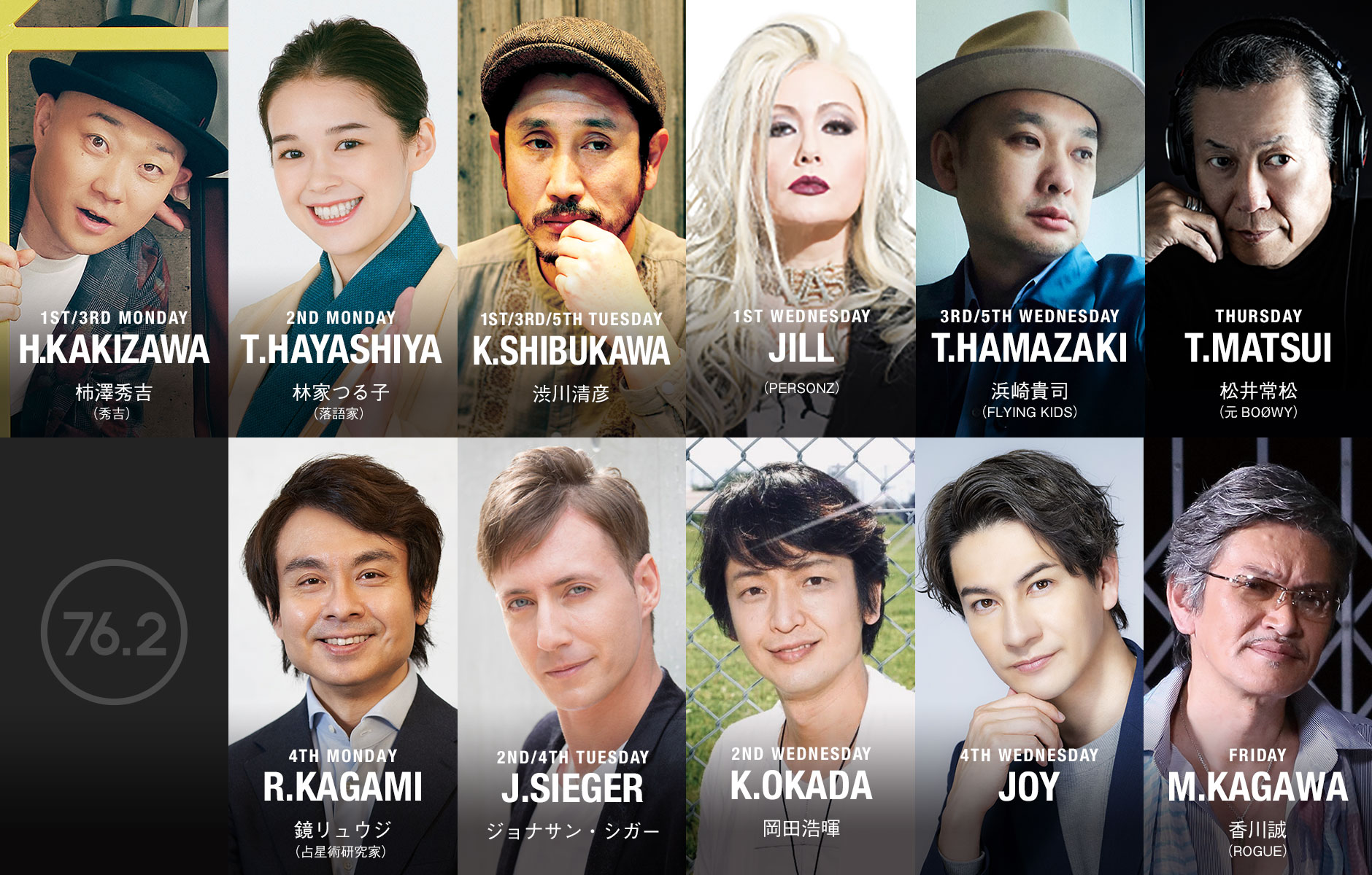 | 水曜日 | 1週目:JILL(PERSONZ) 2週目:岡田浩暉 3・5週目:浜崎貴司(FLYING KIDS) 4週目:JOY |
